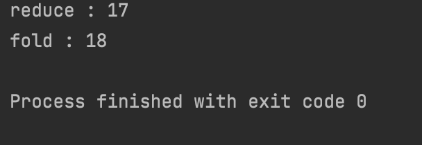 collection 내의 데이터를 모두 모으는(accumulate) 함수입니다. reduce와 fold의 차이는 초기값이 있냐 없냐입니다. fold의 경우 초기값을 설정할 수 있습니다. reduce는 첫 번째 요소를 acc로 사용되고 두 번째 요소 이후 계속 연산을 합니다.