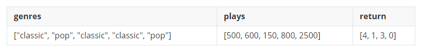 fun getMostGenresList(genres: Array<String>, plays: IntArray) : Array<String> {