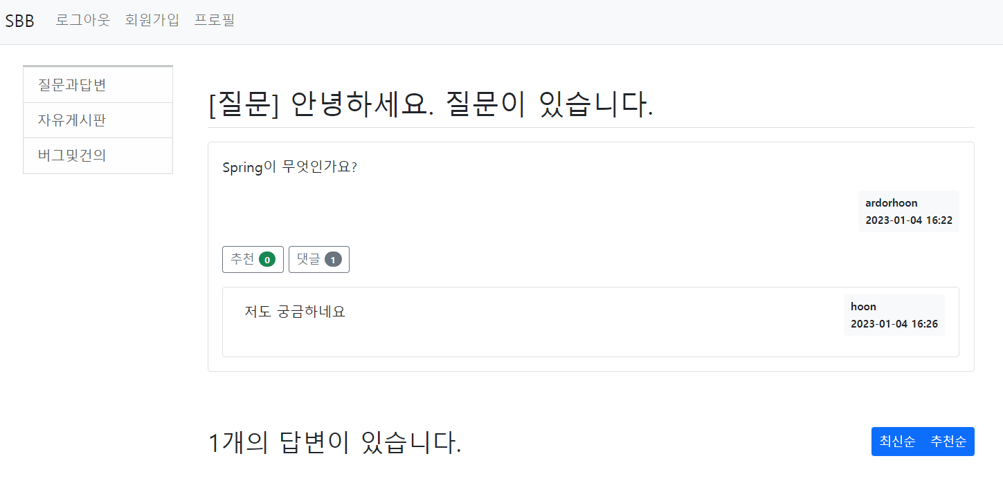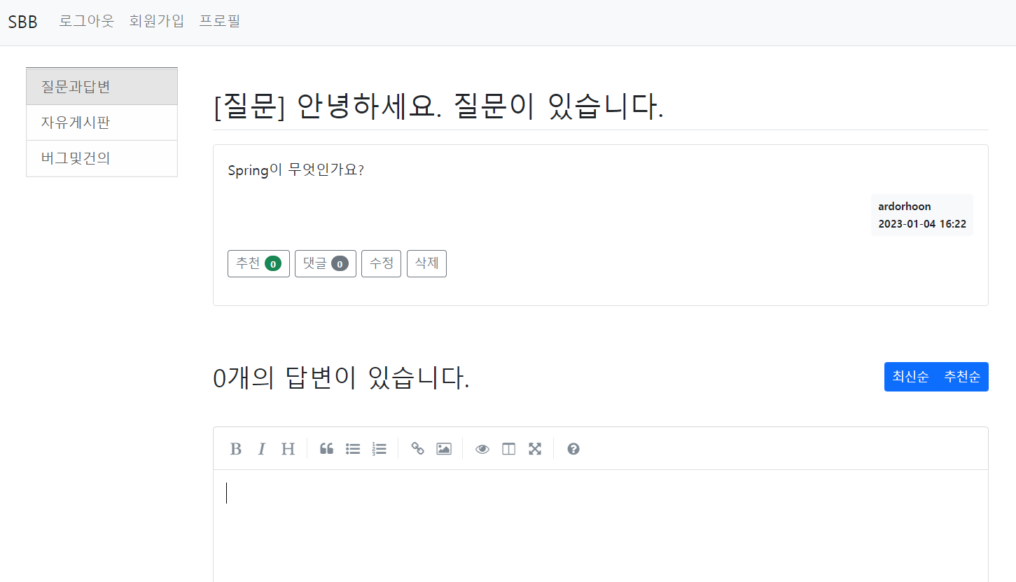 마지막으로 질문 밑에 답변을 달 수 있는 기능을 추가했습니다.