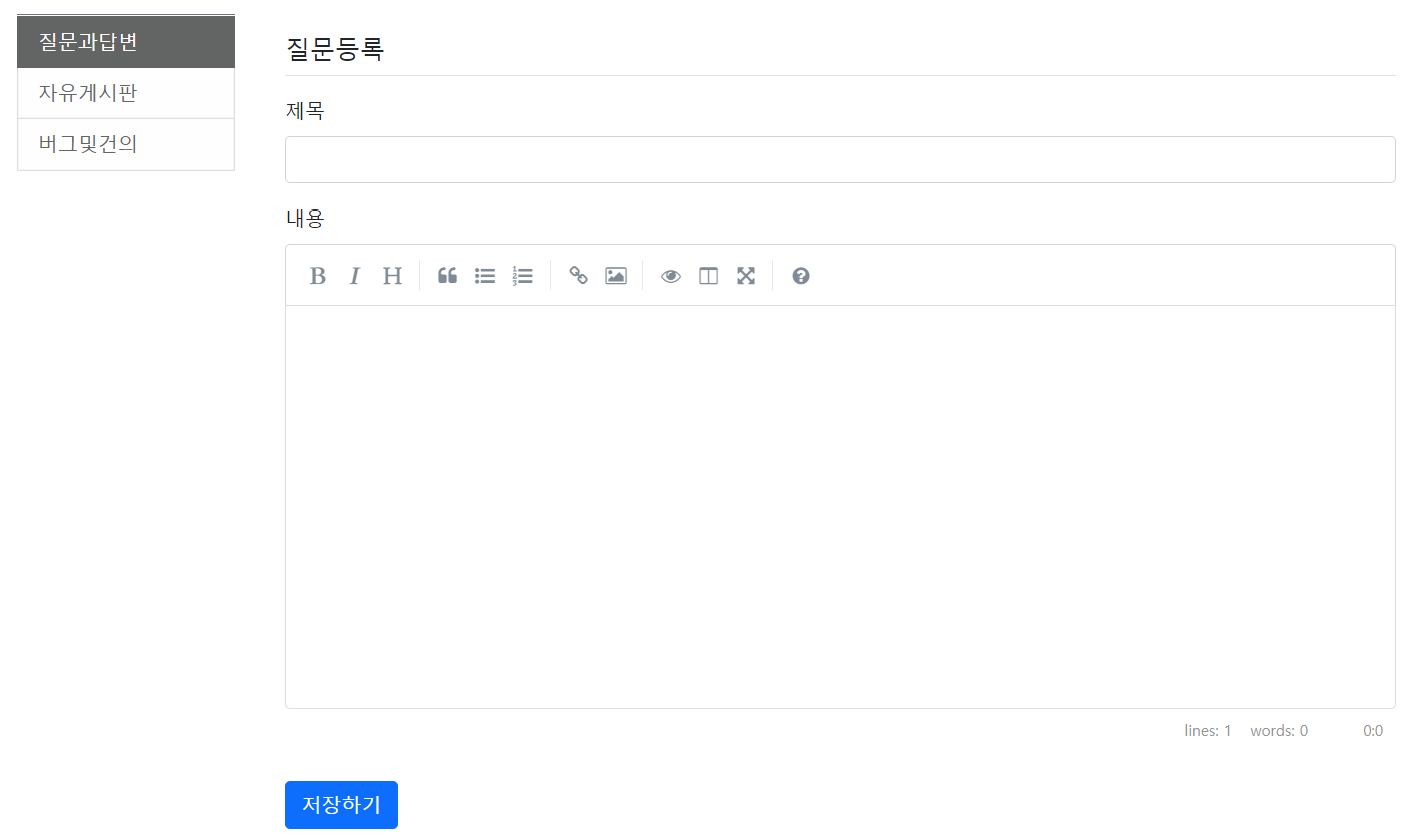 마크다운 에디터는 simpleMDE를 적용했습니다.
